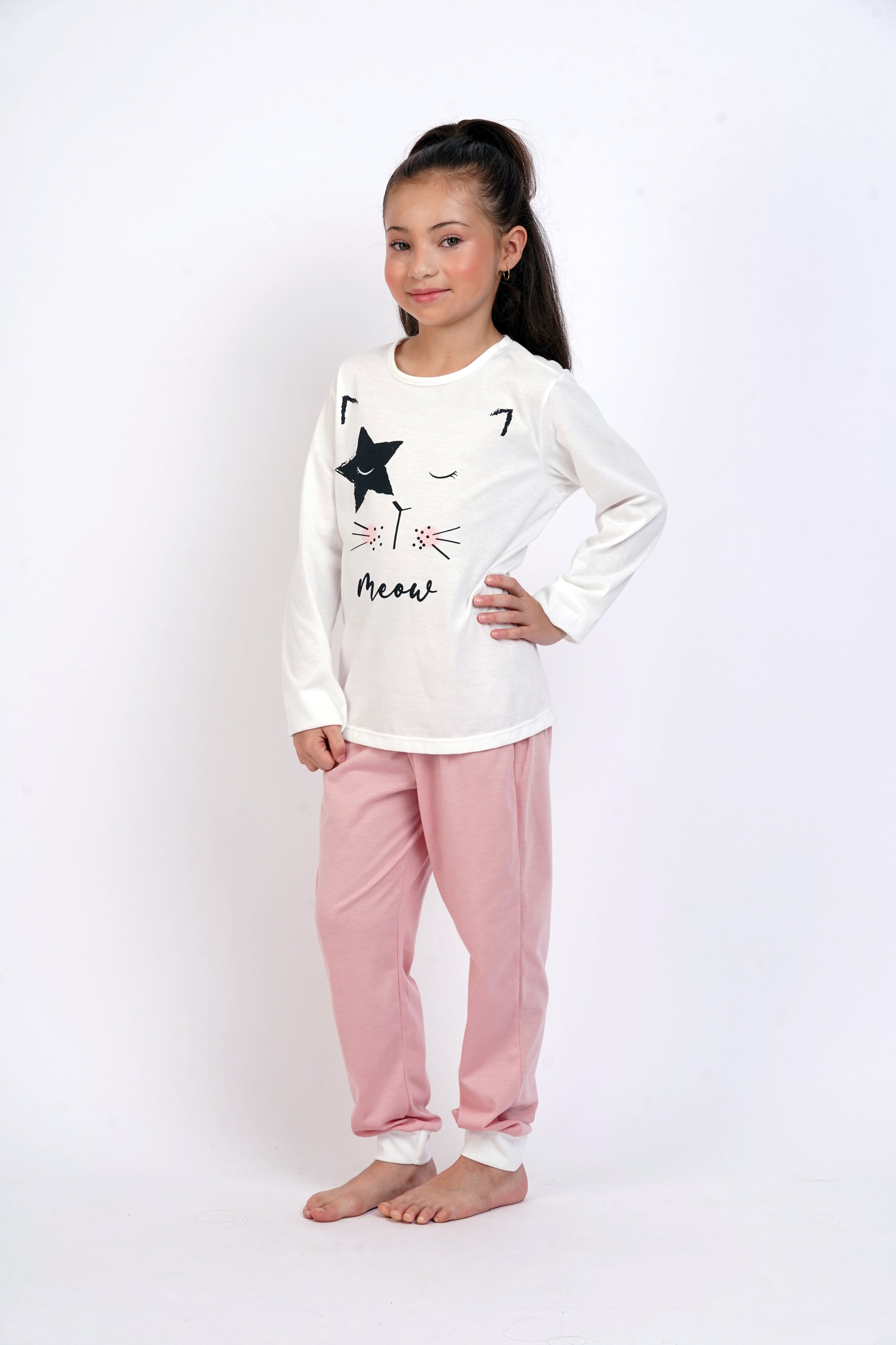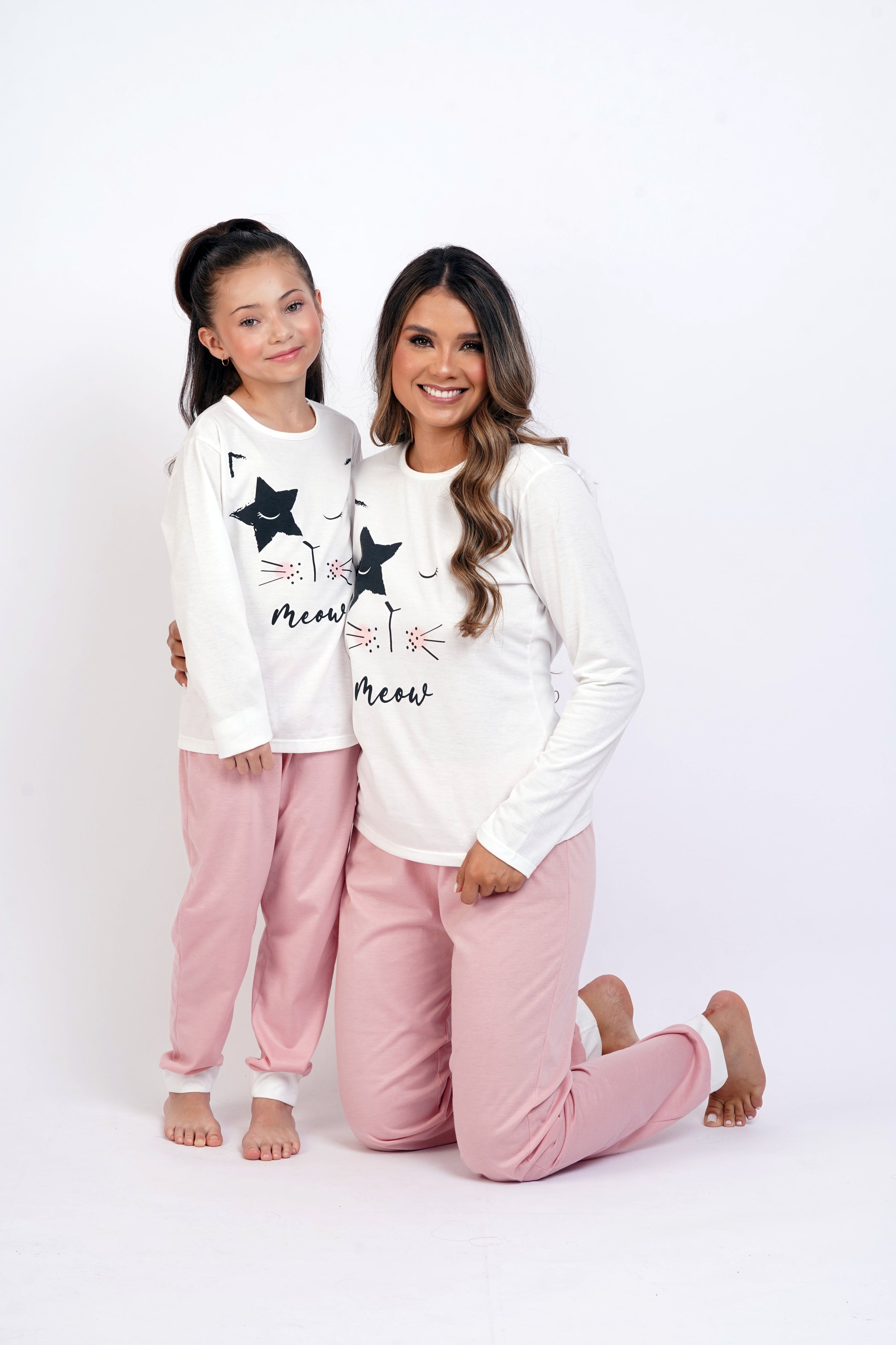 Pijama para niña conjunto de manga larga y pantalón diseño Meow